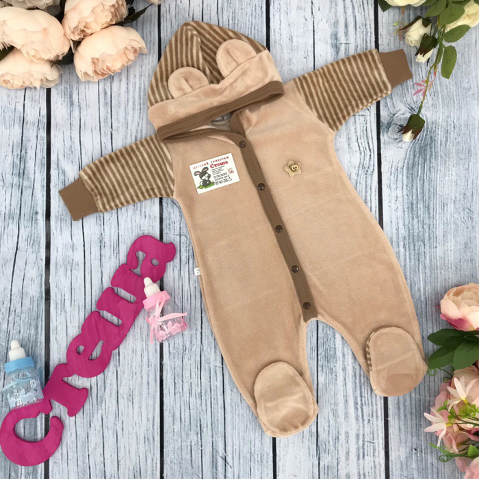 Теги: Купить велюровый комбинезон оптом от производителя. 225. Комбинезон с шапкой, 80% хлопок велюр, 20% ПЭ 56,62,68,74 цена,отзывы официальный сайт "Стеша Калуга"