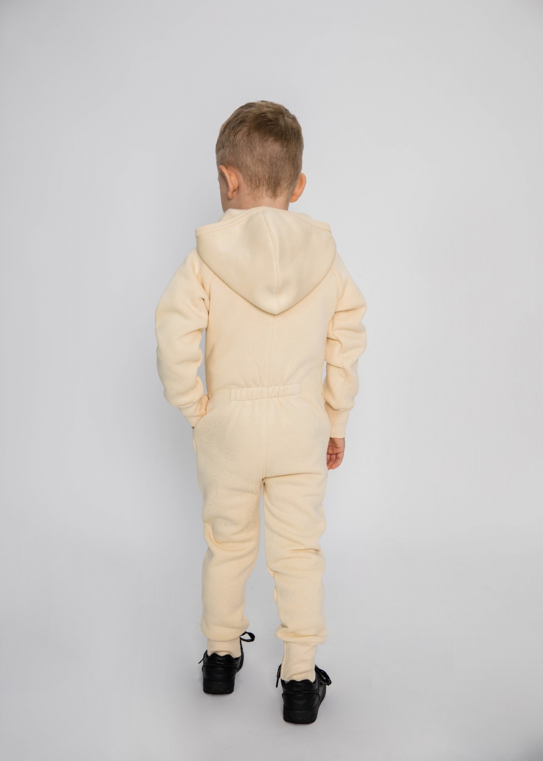 318-СЛ. Комбинезон на молнии с капюшоном, сливочный, хлопок 65%, 35% ПЭ, 3 нитка толстовка (начёс) 86,92,98,104