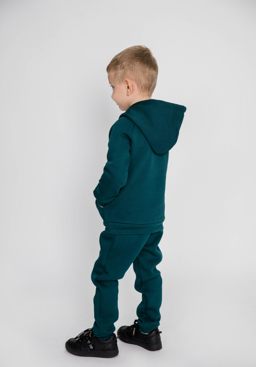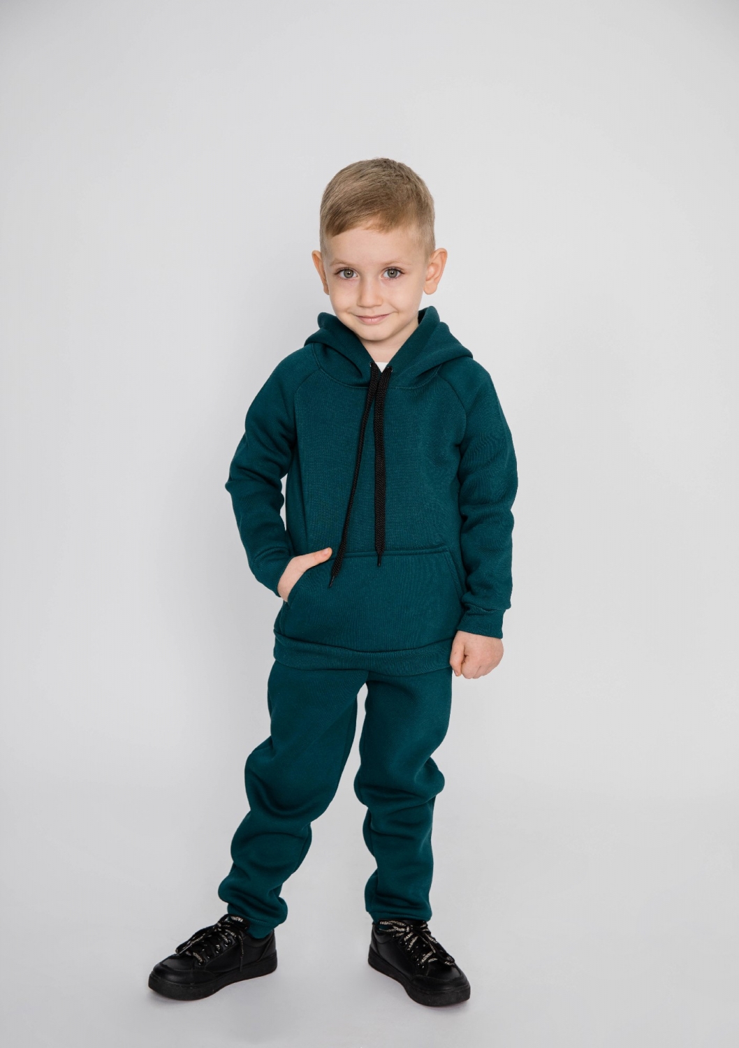 Купить оптом 296-И. Свитшот с капюшоном + Штаны, хлопок 65%, 35% ПЭ, 3-х нитка (начес) изумрудный 98,104,110,116 в Калуге