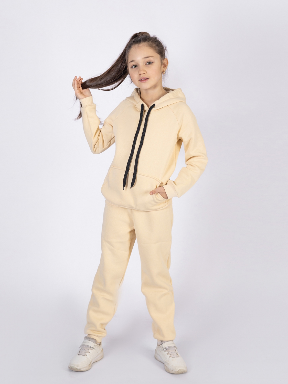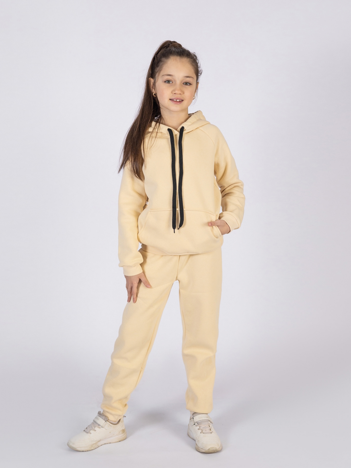 Купить оптом 296-СЛ. Свитшот с капюшоном + Штаны, хлопок 65%, 35% ПЭ, 3-х нитка (начес) сливочный 122,128,134,140 в Калуге