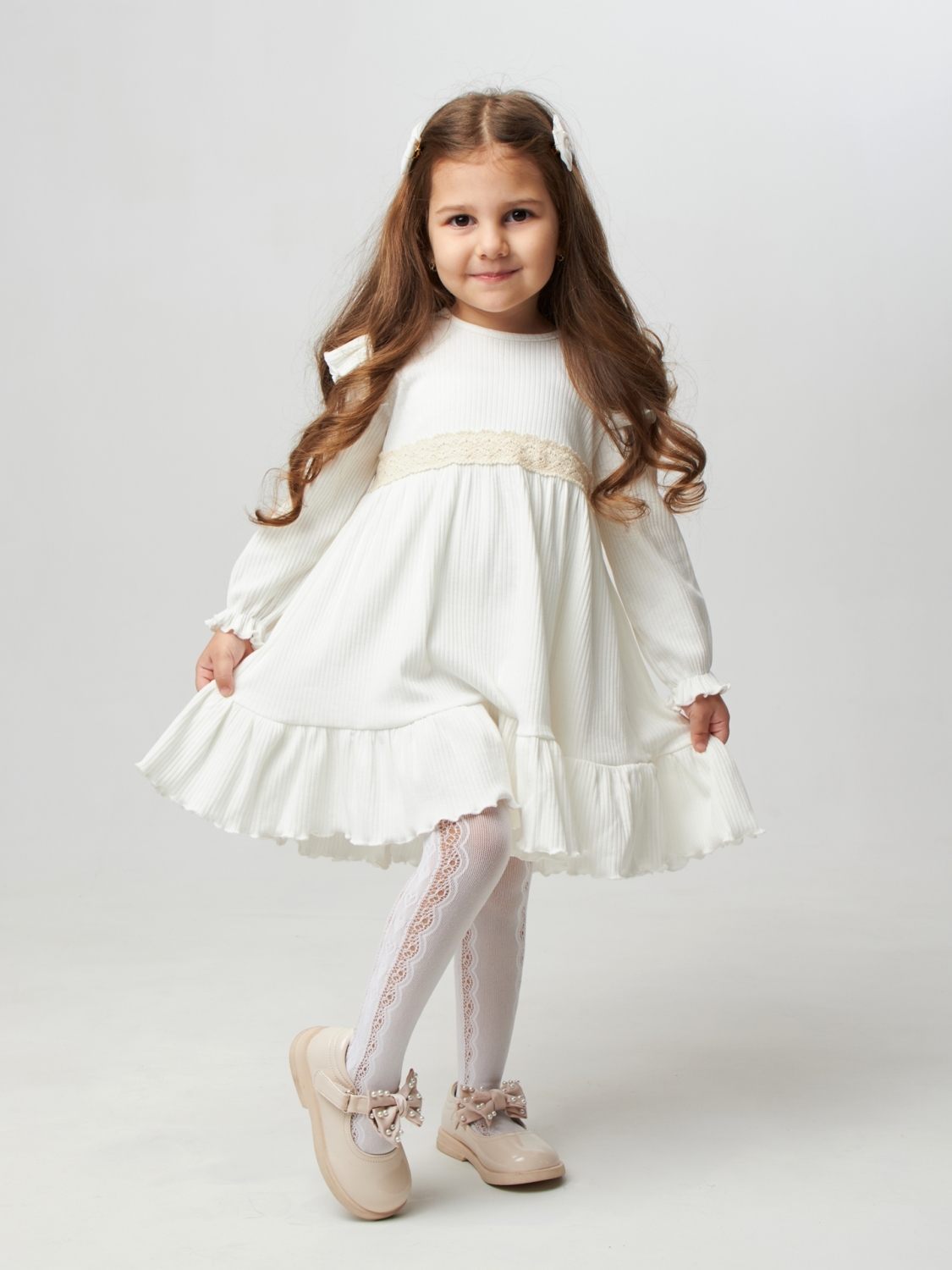 Теги: Платья детские из мулина оптом. 332. Платье детское из лапши, хлопок 100%, молочное, р. 74,80,86,92 цена,отзывы официальный сайт "Стеша Калуга"